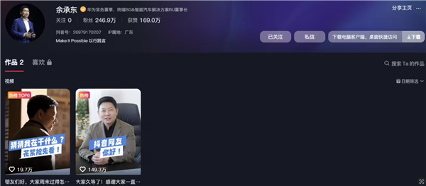 华为常务董事余承东近日在短视频平台抖音上灵通了个东谈主账号体育游戏app平台,并发布了两条动态视频。他的最新一条动态晓谕,鸿蒙智行年度直播将于12月19日中午12点举行。