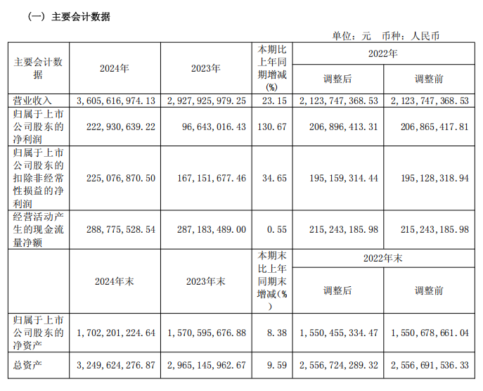 托比网讯,日前,咸亨国外(股票代码:605056)讲求发布了其2024年度财务论说,论说涌现,行为宇宙性的MRO集约化供应商,咸亨国外皮2024年扫尾了交易收入36.06亿元东谈主民币,同比增长23.15%;包摄于上市公司股东的净利润2.23亿元东谈主民币,同比增长130.67%。